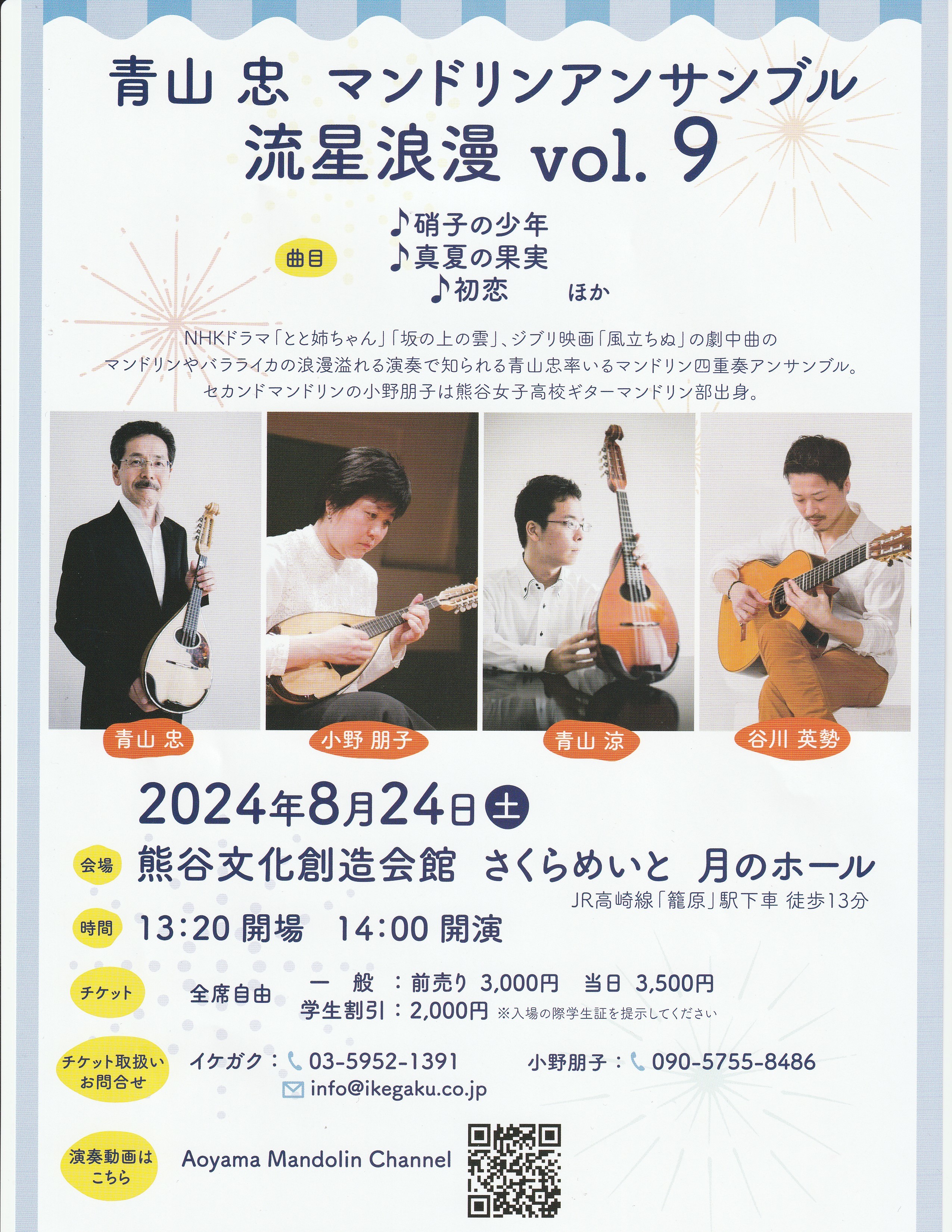2024年8月24日(土)青山忠マンドリンアンサンブル 流星浪漫 vol.9
